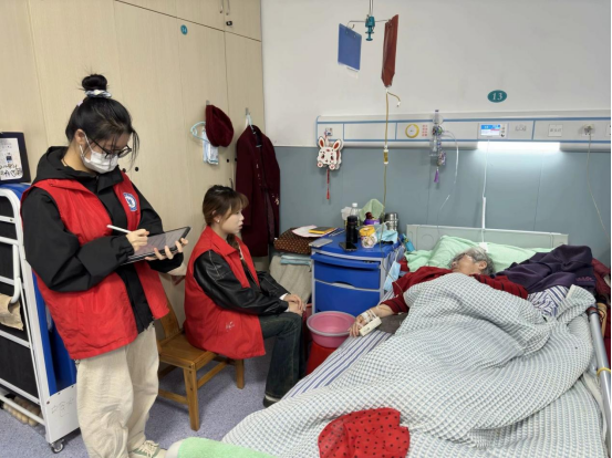 学生在武汉市东湖医院看望和陪伴老人