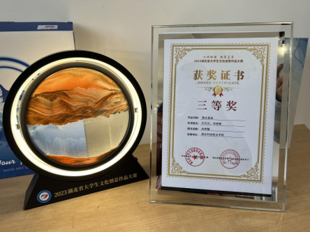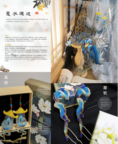 本网讯(通讯员 向梦飘 文/图)近日,2023年湖北省大学生文化创意作品大赛省级决赛落下帷幕。传媒艺术学院精心组织,共征集30余项作品。其中,2022级许贝贝、韦晓薇同学的文创作品《楚水逥波》经入围复赛实物评审,最终获得省赛三等奖的好成绩。