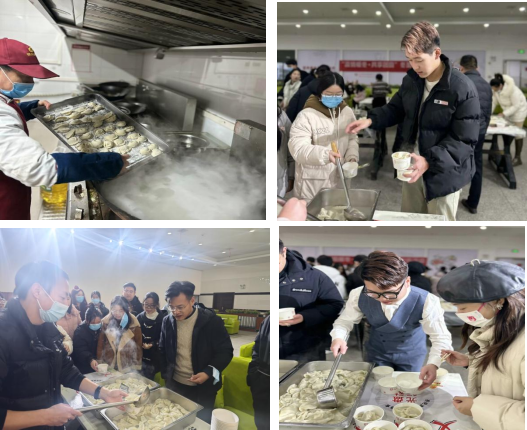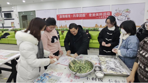 本网讯(通讯员 张哲聪/文 钟姝佳/图)为弘扬传统文化、丰富校园生活,12月21日下午,工商管理学院联合后勤服务集团在学校关山校区食堂三楼举办以“温晴暖冬·共享团圆”为主题的冬至包饺子活动。副校长宋移安与90余位师生欢聚一堂,一同包饺子,喜迎冬至。