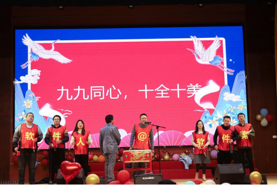 全体学院辅导员倾情演绎的节目《真心英雄》,以动感“Can you feel it”作为开场,秒速点燃现场热情。大屏幕轮番展示辅导员们的珍贵照片,彰显出日常工作中的努力和付出。由移动应用开发专业和物联网应用技术专业的全体专任教师带来的歌曲《相亲相爱》,在师生共同演绎下,营造了温馨和谐的氛围,展现了师生间的亲密关系,也体现了学院注重人文关怀和精神共建的教育理念。由软件技术专业和区块链技术应用专业的全体专任教师带来的脱口秀《非常六加一》,以新颖的形式、精彩的叙事和生动有趣的内容,赢得了阵阵笑声。紧接着,《明天会更好》将晚会推向高潮,鼓励每一位学子坚定信念,相信未来一定会更加美好。这些节目不仅展现了学院教师的艺术才华,还体现了学院在实施最新思政育人政策方面的创新和努力。