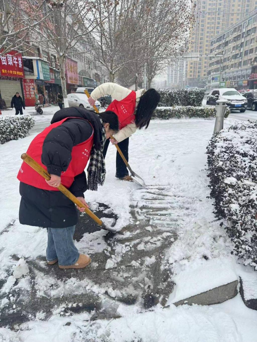志愿者们不畏严寒、干劲十足,纷纷参与到当地的扫雪铲冰、文明交通行动中,忙碌的“志愿红”身影在凛冽的寒风中构成了一道亮丽的风景线,美丽动人!经济贸易学院会继续动员广大团员青年持续发扬“党有号召,团有行动”的优良传统,在急难险重任务中当先锋、做表率,用实际行动诠释青春能量,展现青年担当。