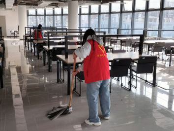 新学期,我校新建图书馆正式向同学们开放,图书馆内功能齐全、主题突出、简约大气、实用便捷,智慧化程度高,迅速成为湖科学子学习交流的“打卡地”,每天早上开馆前门口就排起了长队。为了给同学们营造一个整洁、舒适的学习环境,校团委实践部的同学们在“荆楚学习广场—第二课堂”发起了“学雷锋”系列活动之图书馆爱国主义卫生运动,共计467位志愿者踊跃报名。在每周四闭馆时,志愿者分批到图书馆进行卫生清理志愿服务活动。他们分工协作、配合默契,细心整理书架,擦拭桌面、柜面灰尘,仔细清洁卫生死角。在服务中体味无私奉献,服务师生的乐趣,用实际行动弘扬“奉献、友爱、互助、进步”的志愿者精神。
