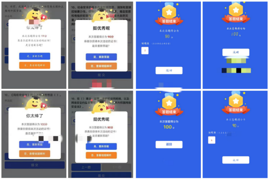 组织在校学生登录中国大学生在线,开展“全国大学生国家安全知识答题”活动,学习掌握国家安全知识,引导大学生坚定维护国家政权安全、制度安全、意识形态安全,营造国家安全人人参与、人人有责的浓厚氛围。