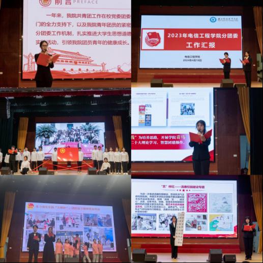 述职环节,各学院分团委用丰富的展现形式,讲述了基层团组织在加强思想引领、完善组织建设、活跃第二课堂等方面做出的努力,他们团结带领学院团员青年担当作为,创先争优,均以优异成绩圆满完成本年度的工作任务。经济贸易学院分团委培育的优秀主讲人荣获了湖北省2023年百生讲坛特等奖;传媒艺术学院分团委组建的“区微里”志愿服务队获得省级优秀单位;软件工程学院分团委精心组织省级百生讲坛活力团支部评选活动,推选参赛的团支部荣获省级金牌团支部,展现了“领先领跑”的湖科共青团风采。