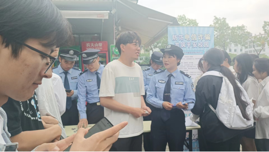 本网讯(通讯员 马忠/文 俞运龙/图)为进一步强化防范电信网络诈骗宣传教育力度,有效减少和遏制各类诈骗案件,积极营造文明健康、平安和谐的校园良好环境,4月29日上午,学校保卫部联合茅店派出所开展“防范电信诈骗,共筑平安校园”反诈宣传教育活动。