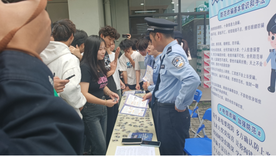 警官们现场发放宣传资料,结合近期高校电信网络诈骗真实案例,向同学们讲解不法分子常用的诈骗手段,告诫同学们在日常学习生活中要提高警惕,特别是网购、社交、支付等场景中,要使用正规交易平台,不要随意点击陌生链接,慎用不熟悉的APP或者小程序,切记保护好个人信息。遇到各种形式的骗局,要做到不轻信、不理睬、不转账、不汇款,谨记“给钱不要,要钱不给”的警方忠告。