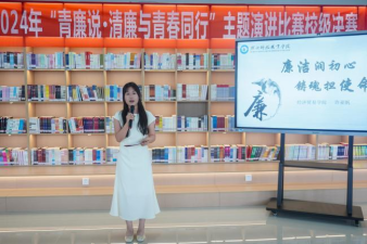 本网讯(通讯员 肖莉山 刘美钰/文 张文静/图)为激发学生笃学尚行的学习意志,夯实清正廉洁的思想根基,涵养风清气正的“清廉校园”政治生态,6月4日中午,校团委在图书馆4楼视听阅读室组织开展了“青廉说·清廉与青春同行”演讲活动。纪委、监察专员办纪检监察室主任周凯,校团委书记白杰,各学院分团委书记参加活动并担任评委,100余名同学到场观看并参与活动。
