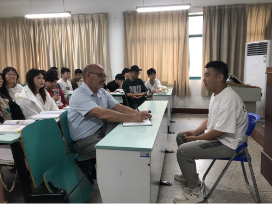 教师联合授课。6月初至中旬,公共英语教研室邀请Chester先生走进《职场通用英语》课堂与英语教师共同授课。作为职场商务沟通领域的资深专家,Chester先生为学生普及了面试技巧、西餐礼仪、危机应对、投诉处理、汇报演示等职场必备的应对策略和沟通技能。课中,学生踊跃参与各种职场情境模拟活动,与外教进行积极的双向互动,风趣幽默、别开生面的沉浸式课堂让学生体验深刻,收获满满。