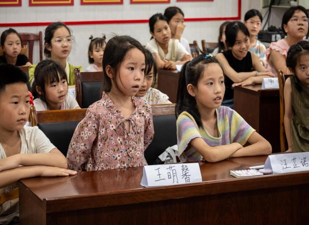 “请同学们先闭上眼睛”,第一堂古诗词课正式开始之前,志愿者向学生们说道。随着悠扬的旁白声传出,学生们回溯大唐,重现古诗场景。
