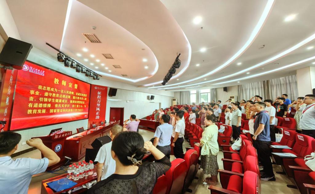 本网讯(通讯员 陈霞/文 方丹/图)8月1日,由天门市教育局、天门市教师进修学校主办,我校承办的2024年天门市普通高中物理学科教师培训在我校顺利开班,来自天门市11所高中学校的55名物理教师参加培训。