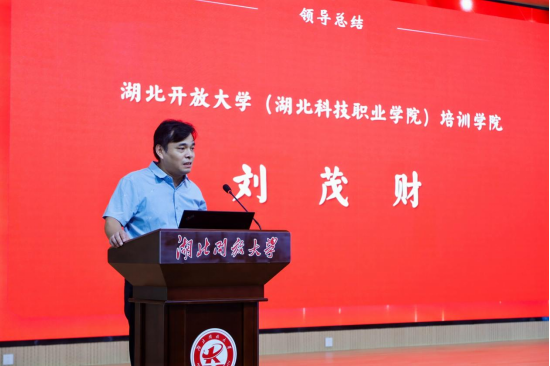 刘茂财作总结发言,他表示,培训班涵盖了专家讲座、教学研讨、技能实操、企业参观、重温党史、党纪学习教育、师德师风建设等多个方面,主题突出、内容丰富,学校及合作企业共同努力为学员搭建了良好的交流合作的平台。他对研修班的成功举办表示热烈祝贺,感谢工作人员的辛勤付出,并高度赞扬了教师们的无私奉献与卓越教学,同时向全体学员致以最诚挚的祝愿,期待大家在未来的教育道路上继续发光发热,共创辉煌。