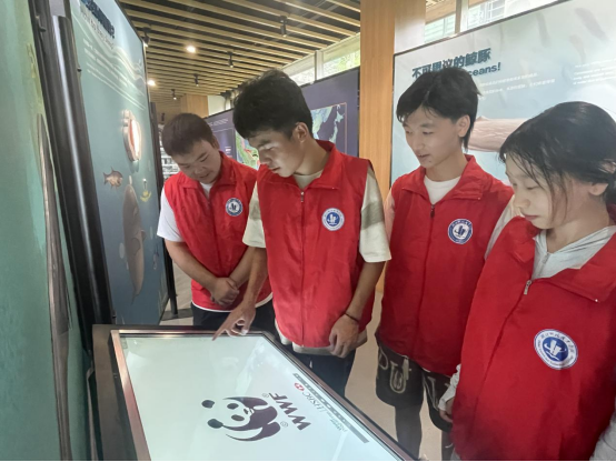志愿服务队走进水生所博物馆、湿地科普馆等“江豚守护者”打卡点参观学习。通过观察江豚标本,志愿服务队和江豚有了一次近距离接触和直观了解;通过场馆内的多样化互动装置和VR设备,志愿者们多角度全方位了解了江豚的生物特征、生活形态和栖息地,以及其面临的危机。此次参观学习实践不仅使同学们系统了解了江豚,更深切地感受到青山绿水才是江豚生活的美好家园。同学们纷纷表示要自觉成为江豚保护宣传者,生态文明践行者。