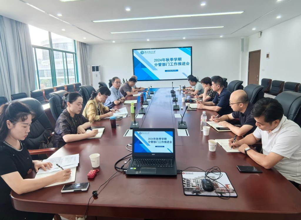 本网讯(通讯员 陈佳 文/图)8月29日上午,副校长汤春来主持召开分管部门、协管部门新学期工作推进会,党办校办,人事处、外事处、教师工作部,开放教育学院、培训学院,社区教育学院,终身教育研究院班子成员参加会议。