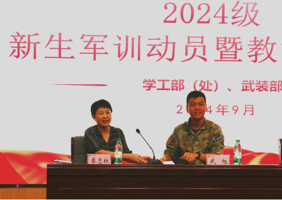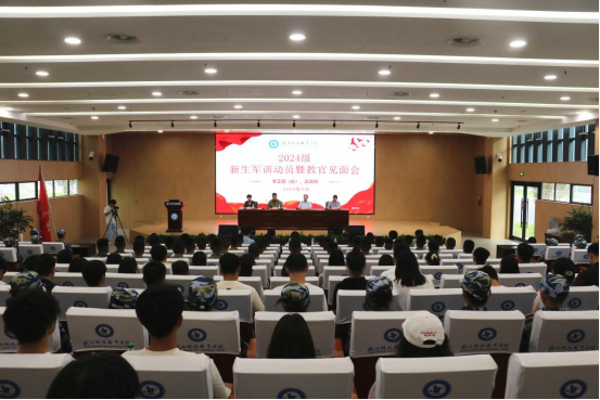 本网讯(通讯员 张益峰/文 李贺刚/图)9月14日下午,我校在关山校区综合实训楼报告厅举行了2024级新生军训动员暨教官见面会。党委常委李宜兵,学工部(处)、武装部、保卫处、后勤服务集团负责人,空军武汉基地40名现役部队教官,各学院党总支书记,学工办主任、全体新生辅导员、各学院新生代表及助理教官参加会议。