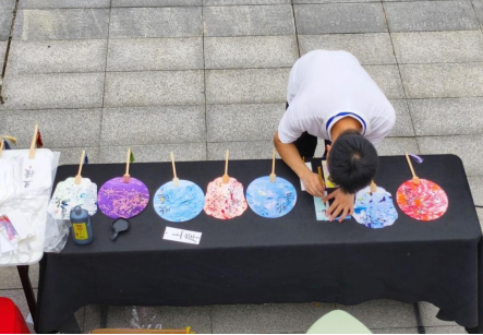 现场展示学生自主设计的扇子