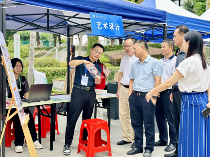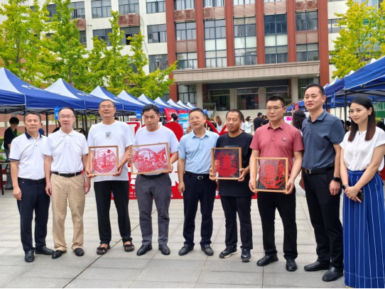 在迎新现场,艺术创意学院精心布置了专业优秀作品展,作品涵盖了学院人物形象设计、艺术设计、广告艺术设计、虚拟现实技术应用等专业方向的成果,让新生全方位、沉浸式了解专业特色。作品展不仅吸引了新生及家长驻足观赏,也为新生描绘出未来精彩大学生活的图景。2022级广告艺术设计专业的学生以“武汉地标”为主题,用传统剪纸技艺刻画“黄鹤楼”“武汉长江大桥”“江汉关”等建筑。校党委副书记何平将这些富有艺术特色的剪纸作品赠予外地家长,让他们带着一份独特的武汉记忆回家。