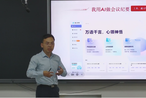 本次培训包括AI大模型的发展趋势、AI大模型的使用技巧、AI办公工具三大模块的内容,通过丰富的实际案例、动画视频等形式向老师们展示了AI大模型在教学科研、课程设计、教学管理、日常办公等方面的应用。
