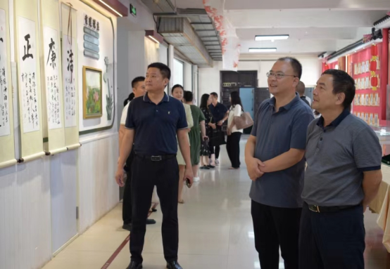 签约仪式前,在江夏区大桥教育局总支书记余明伟,江夏区大花岭小学校长熊辉,黄文娟书记,副校长刘蔷薇,陈浩等陪同下,我校相关人员参观了大花岭小学非遗类和书画类展览。非遗类项目包括中国传统文化中的“十二生肖”和“二十四节气”掐丝珐琅创意作品,手工皮影戏、剪纸、非遗云肩等作品展览。