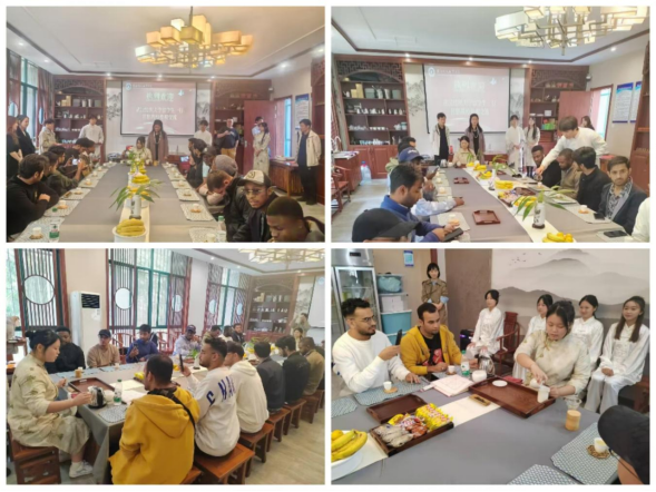 “武汉五一劳动奖章”获得者、工商管理学院教师陈蔚向全体留学生讲述了中国饮茶文化,现场教授了识茶、辨茶、泡茶和品茶的技艺。精致的茶具、吐雾的茶壶、流淌的红茶,留学生们参与其中,现场其乐融融。