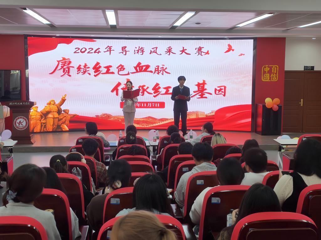 本网讯(通讯员 邓君 王红玲 文/图)11月7日下午,工商管理学院举办了以“赓续红色血脉,传承红色基因” 为主题的2024年校园导游风采大赛。