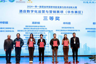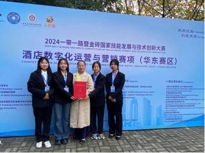 本网讯(通讯员 杨国丽 文/图)11月20日至22日,2024“一带一路”暨金砖国家技能发展与技术创新大赛首届酒店数字化运营与营销赛项华东赛区选拔赛在无锡城市职业技术学院举行。大赛为期3天,共有来自江苏、浙江、安徽、湖北、江西等五个省68支参赛队伍同台竞技。我校工商管理学院2023级酒店管理与数字化运营专业学生马成宇、易小微、王梦婷、李宇涵分别组成的2支参赛团队,在杨国丽老师的指导下,均荣获华东赛区选拔赛高职组三等奖。