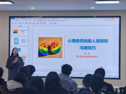 为有效指导心理委员开展工作,心理中心老师以小视频、案例分析为引,从心理健康的定义切入,详细阐述了助人原则和沟通技巧。心理中心老师表示,心理健康状态是动态可逆的,希望心理委员秉持“价值中立、有限保密和助人自助”的原则,于朋辈互动中巧用沟通技巧。