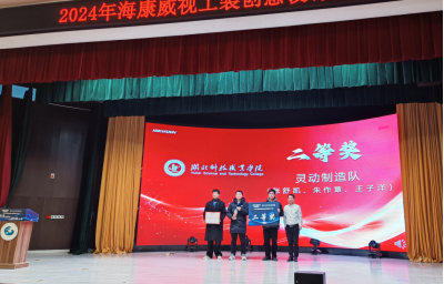 本网讯(通讯员 黄燕 严翩 文/图)12月25日下午,海康威视武汉工装创意设计大赛在武汉举行,5所本科、高职院校的12支参赛团队参赛。我校机电工程学院教师黄燕和严翩指导的由朱作章、张舒凯和王子洋组成的学生团队,经过激烈的角逐,凭借出色的创意和精湛的设计,荣获团体二等奖。黄燕荣获“创意启迪奖”。