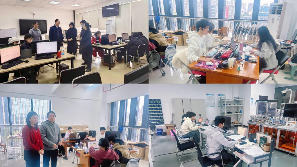 教学场所安全检查期间,部分实训室正紧锣密鼓地进行2025年省赛备赛寒假集训。谢永平为勤勉备战、不懈努力的师生团队加油打气,传递温暖而坚定的支持。同时,他表示各学院要切实做好赛事相关的后勤服务及安全保障工作,确保每位参赛师生能在安全无忧的环境中全力以赴、冲刺佳绩,教务处也将全程协助各学院共同做好师生备赛的服务工作。