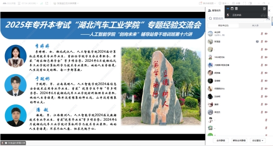 聚焦专升本热点需求,2月21日,人工智能学院畅想未来工作室依托“一站式”学生社区举办“2025年专升本经验交流会”,邀请往届成功专升本学生,从政策变化、院校选择到复习方法开展多维度指导,吸引300余名学生在线参与互动。后续,学院将持续搭建本专协同成长平台,助力学子升学路。