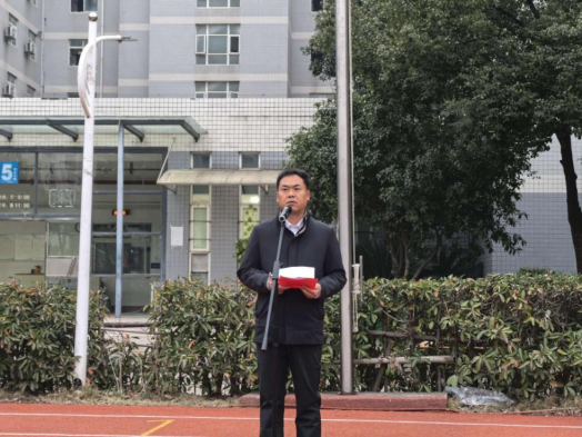 在庄严的国旗下,周得力以“蛇年舞动新征程 青春奋斗向未来”为主题,为同学们送上了一份“精神大餐”。他回顾到,2024年我校教育教学成果丰硕、亮点频出,关山校区综合实训楼与图书馆相继建成扩容、焕然一新,学生在全国全省各级各类大赛中摘金夺银、佳绩连连,学校全方位助力学生全面发展,取得喜人成效,得益于师生的共同拼搏。他对同学们提出三点殷切期望:一是秉持“长风破浪会有时,直挂云帆济沧海”的奋斗精神,勇毅笃行,励志图强,用奋斗姿态谱写发展的华章;二是弘扬“纸上得来终觉浅,绝知此事要躬行”的实践精神,脚踏实地,勤于实践,用实际行动诠释学习的真谛;三是坚守“千淘万漉虽辛苦,吹尽狂沙始到金”的追梦精神,矢志不渝,奋楫争先,用拼搏汗水铸就青春的辉煌。
