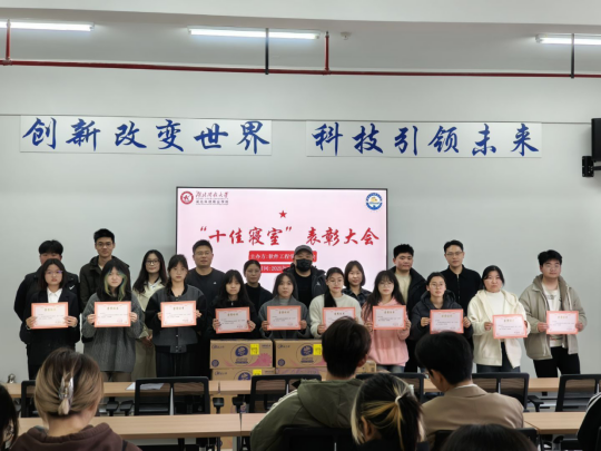 为充分发挥典型寝室的示范引领作用,学院每学期初组织评选“十佳寝室”。评选包括舍风建设、学风建设、内务卫生、安全秩序、遵章守纪、文化建设6个维度,并设立“一票否决”事项,确保评选的科学性和公平性。在2月28日的表彰活动中,4405寝室凭借上学期历次查寝平均分94.43分的成绩,从大一、大二年级220多个寝室中脱颖而出,荣居榜首。评选活动不仅树立了榜样,也为其他寝室提供了学习和追赶的目标,营造了比学赶超的良好氛围。