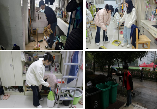 “这个塑料瓶是可回收垃圾,应该放在蓝色垃圾桶里”“对,外卖垃圾要单独分类,不能混在一起”在垃圾分类环节,4108寝室的室友们互相提醒,确保每一件垃圾都“对号入座”。大家不仅清理了寝室的垃圾,还主动将楼道的公共区域打扫干净,并将垃圾带下楼,用实际行动践行环保理念。