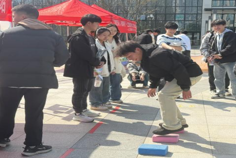 机电工程学院的“摸石过河”游戏要求参与者脚踏砖块协作前行,由于游戏设置了手脚悬空的规则,稍有不慎就可能引发 “落水” 的惊叫。既考验了同学们的平衡力,又要求大家冷静思考、默契配合,磨炼了意志品质。工商管理学院的“快乐投壶”游戏需要同学们手持箭矢,全神贯注地投向壶中,这一过程既要求控制手臂的力量和角度,又要求集中精力瞄准目标,培养了同学的专注力和耐心,有助于面对复杂的任务时减少焦虑和烦躁情绪。