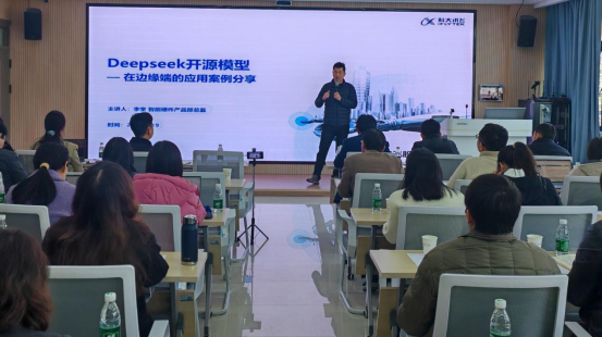 李奎以“DeepSeek开源模型在边缘端的应用案例分享”为主题进行培训分享。他以边缘端应用为切入点,展示了DeepSeek开源模型在智能终端设备中的实际案例。他通过技术架构解析与现场演示,呈现了模型在低算力环境下的高效运行能力,为教育场景中分布式AI设备的落地提供了技术支撑。