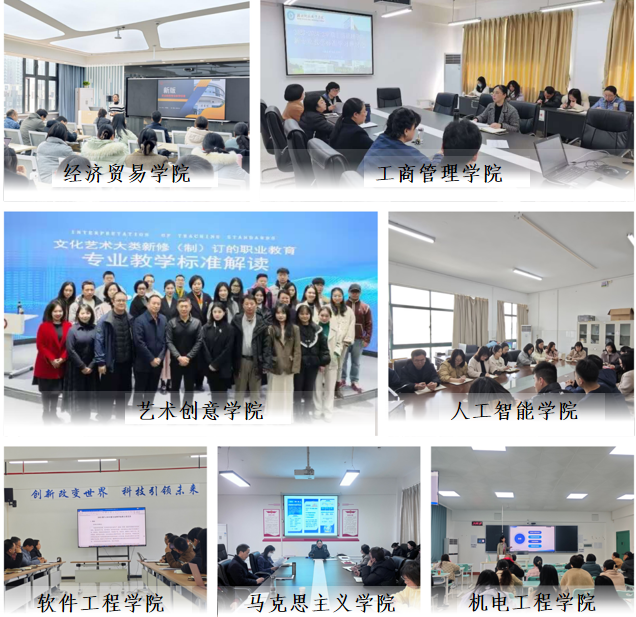 各教学单位围绕新专业教学标准的落地落实,结合自身专业群建设规划及未来人才培养方向,组织了形式丰富的学习研讨活动。经济贸易学院特邀中国职教学会产教科融合委员会专委会专家、金融专业新标准起草参与者方旭教授从“数字化转型背景、产教融合导向、教学实施规范”等多个维度系统阐释了专业新标准的设计框架。艺术创意学院特邀教育部职业院校艺术设计类专业教学指导委员会秘书长张来源教授针对“文化艺术大类新修(制)订的职业教育专业教学标准”展开深入培训。机电工程学院、人工智能学院等五个教学单位均开展了主题鲜明、内容充实的专题学习研讨活动。