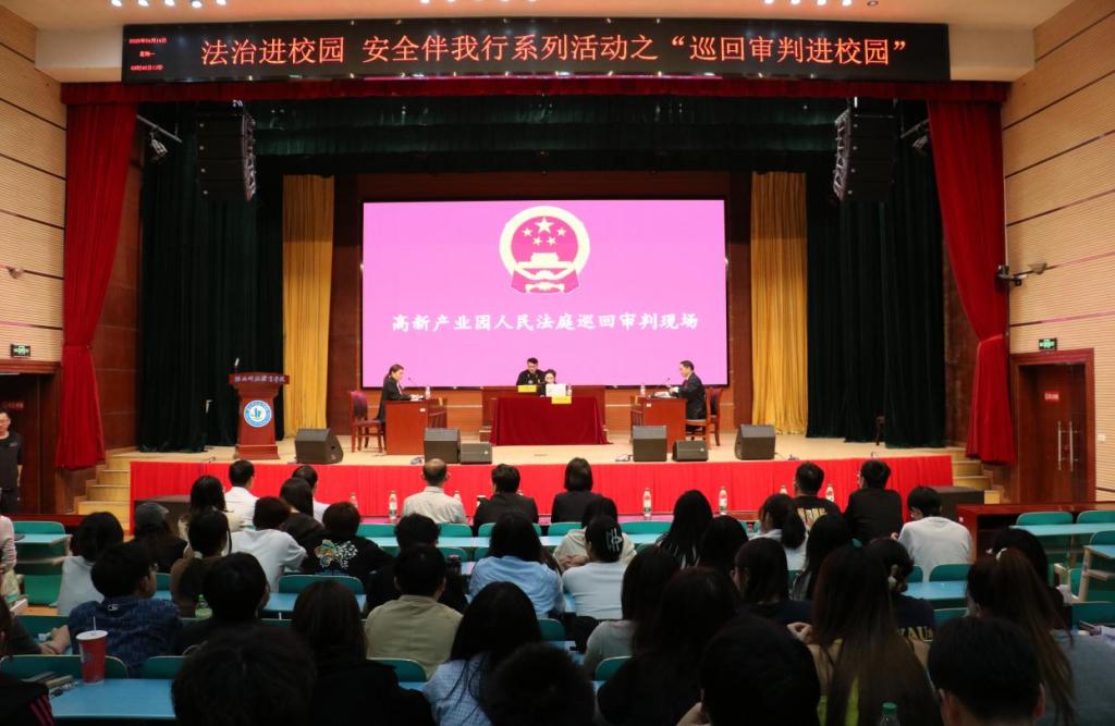 本网讯(通讯员 俞运龙/文 李贺刚/图)当庄严肃静的法庭遇上书香四溢的校园,当凛然正气的法官碰到朝气蓬勃的学生,将“碰撞”出怎样的“火花”?4月15日,时值第十个全民国家安全教育日,武汉市东湖新技术开发区人民法院产业园法庭走进我校开展“巡回审判进校园”活动,把原本严肃的法庭“搬”进校园,为师生们打造了一场前所未有的沉浸式法律体验。宣传部、学工部(处)、武装部、机电工程学院负责人以及全校100余名师生代表参加了旁听。