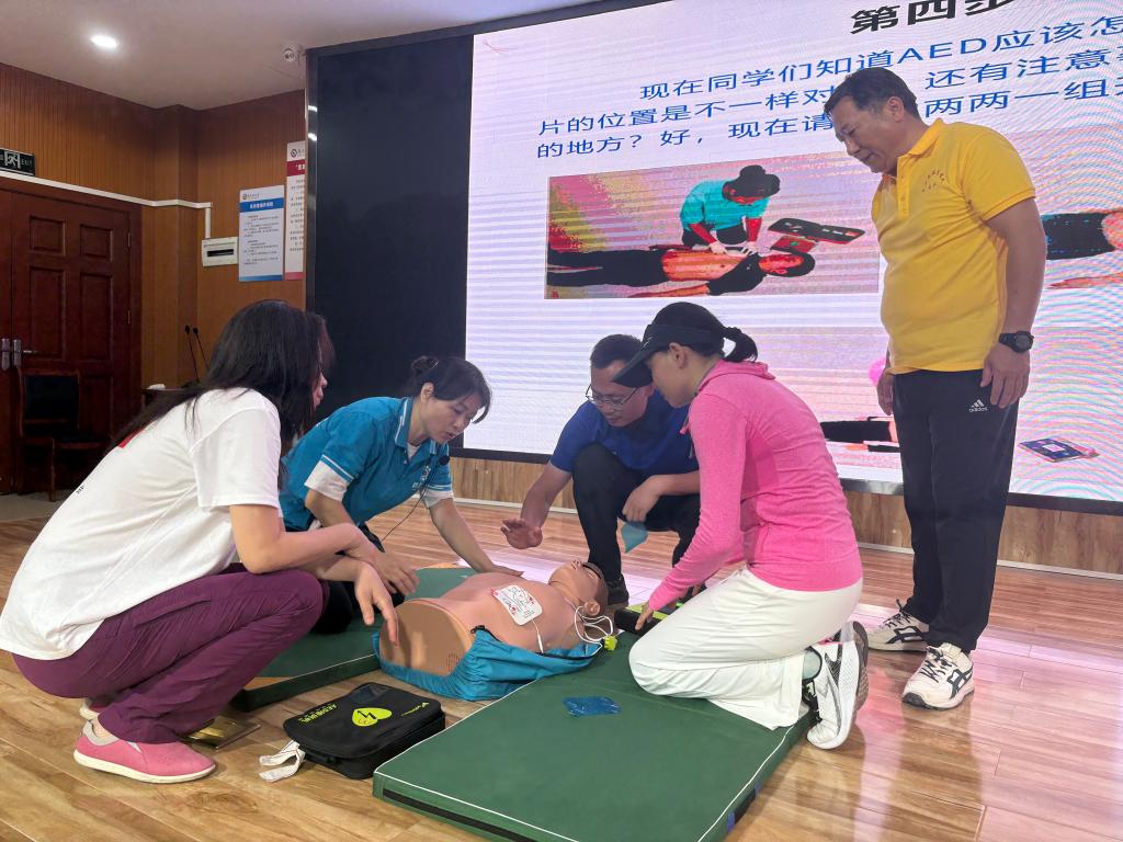 培训特邀武汉长江救援志愿队常务副秘书长袁国华、武汉市红十字爱心传递公益服务中心培训部部长陈丽琴和汉阳区红十字救护培训项目负责人彭玉三位专家联袂授课与指导。培训内容聚焦于校园内常见的急救场景,涵盖心肺复苏术(CPR)的操作规范、自动体外除颤器(AED)的使用方法、气道异物梗阻的急救处理(海姆立克急救法)以及常见创伤的止血包扎技术等基础急救技能。老师们通过深入浅出的理论讲解和标准规范的动作示范,将复杂抽象的理论知识转化为清晰易懂的操作步骤。