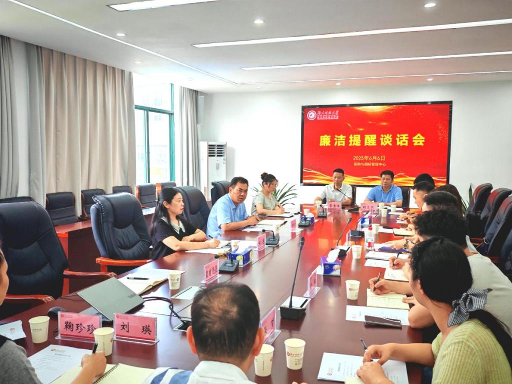 周得力在廉洁提醒谈话中表示,在深入贯彻中央八项规定精神学习教育持续走深走实之际开展这次廉洁提醒谈话,既是学校落实全面从严治党要求的重要举措,也是推动学校采购招标工作规范有序、提质增效的必然要求。本次会议既是开启招标代理委托服务的“合作启动会”,更是一次深化廉洁从业的“警示教育会”。他结合采购招标领域违法犯罪典型案例对招标代理机构提出三个方面的廉洁提醒,一是要守牢法律底线,构建清廉合作生态。坚决不踩廉洁从业的底线,不破法律法规的红线;二是要提升专业能力,打造阳光采购标杆。不断加大标准建设力度、加强风险防控力度、提升服务效能水平;三是加强沟通协调,追求优质采购目标。通过与校方共同优化采购需求、共同研判市场价格信息、共同严防围标串标等实现采购目标最优化,实现财政资金使用绩效最大化,从而实现“优质优价”这个核心目标,为学校建设特色鲜明优势突出新型大学提供有力保障。