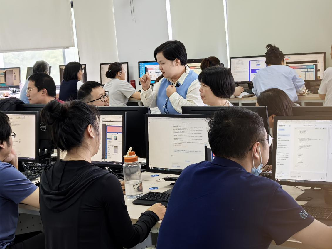 培训现场学习气氛热烈,参训教师们认真聆听记录,并在指导下积极进行现场实操。大家高度评价本次培训课程内容充实、案例鲜活、实操性强,并对下一场培训充满期待。通过亲身体验AI工具在资料生成、办公提效、教学工具开发等方面的强大能力,教师们对如何将AI深度融入日常教学科研工作,提升工作效率与创新性有了更清晰的认识和强烈的尝试意愿。尤其是利用DeepSeek生成互动教学工具的演示,为教师们打开了创新教学方式的新思路。