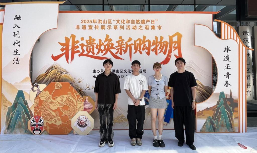 本网讯(通讯员 欧亚梅 桂道乐/文 贺颖/图)6月14日,武汉市洪山区文化大厦人潮涌动。由区文旅局主办的“文化和自然遗产日”非遗宣传展示活动在此举办,以“融入现代生活——非遗正青春”为主题的系列展陈中,我校艺术创意学院师生团队以突破性的创意实践,为传统非遗注入鲜活的时代基因。