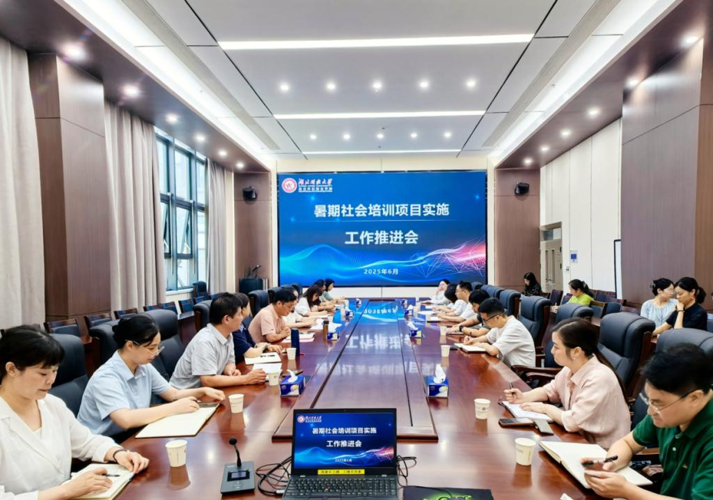 本网讯(通讯员 向海铭/文 张颢蓝/图)6月30日下午,我校组织召开暑期社会培训项目实施工作推进会。校党委常委肖潇参加会议并作指导讲话,暑期承接培训项目的部门相关负责人及项目负责人参会,会议由培训学院院长主持。