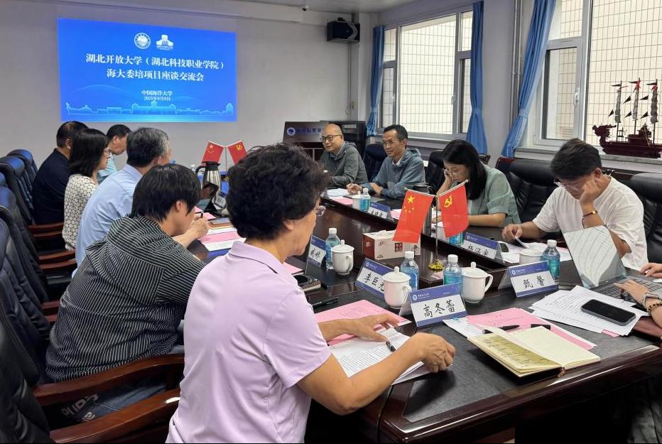双方在中国海洋大学浮山校区举行了联合培养项目工作交流座谈会,会上,中国海洋大学继续教育学院负责人就项目的筹备工作进行了详细汇报,系统介绍为我校学生制定的管理模式、教学计划、课程安排及师资配备等。
