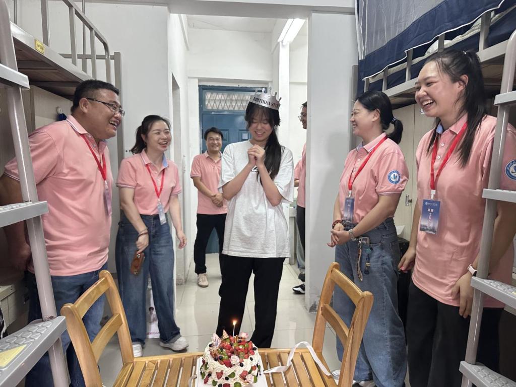 迎新日恰逢新生生日,学院准备了生日蛋糕与祝福,当学院老师将这份“猝不及防”的惊喜送到新生手中时,原本略带拘谨的脸庞瞬间绽放出感动与惊喜的笑容。一句“生日快乐”、一块甜蜜蛋糕,让初到陌生环境的新生切实感受到“经贸大家庭”的温暖,为他们的大学记忆烙下深深的温馨印记。