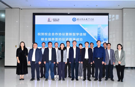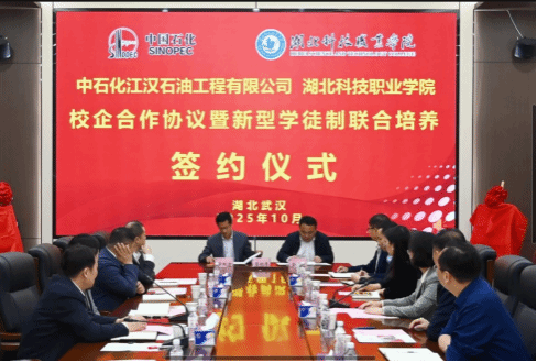 在双方代表的共同见证下,中石化江汉石油工程有限公司人力资源部经理与机电工程学院党总支书记签署合作协议,正式启动“新型学徒制”联合培养项目。