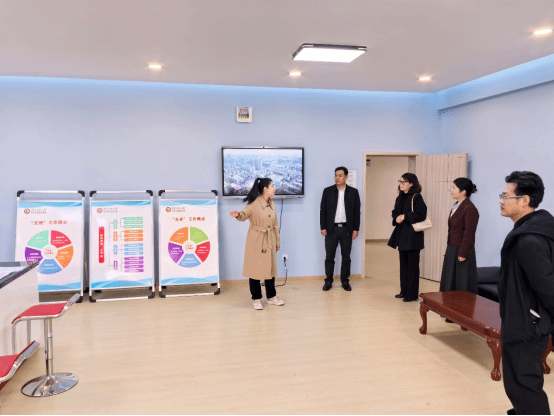 会前,张俊叶一行先后参观了我校关山校区一站式学生社区与心理健康教育中心。在一站式学生社区,学工部老师详细介绍了“一站式服务、一体化育人”的核心运行模式;走进心理健康教育中心,调研团队依次参观体验了团体辅导室、情绪宣泄室、沙盘游戏室等功能区域,张俊叶对我校心理中心规范化的场地建设、专业化的服务团队及常态化的心理服务给予高度认可。