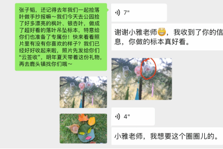 志愿者们手持亲手制作的落叶吊坠,脸上漾着藏不住的笑意。有的轻轻摩挲着叶片边缘的纹路,指尖拂过自己精心制作的落叶吊坠,口中不住感叹:“没想到不起眼的落叶,竟能变成这么精致的宝贝!”有的举着吊坠相互展示,眼里闪着对环保创意成果的骄傲。随后,志愿者们在草坪上合影留念,镜头中一张张笑脸与吊坠相映成趣,将这份践行环保的温暖瞬间永久定格。志愿者们将制作好的落叶吊坠一一拍照、精心整理后,发送给鹿头镇的孩子们,并附言“还记得去年一起捡落叶做环保手抄报的时光吗?今天我们用公园的落叶,给你们做了专属吊坠,快来看看喜欢不?明年盛夏就带过去送给你们!”消息发出后,孩子们纷纷留言,有的表达了对吊坠的喜爱,还有的主动分享了自己的环保小行动。