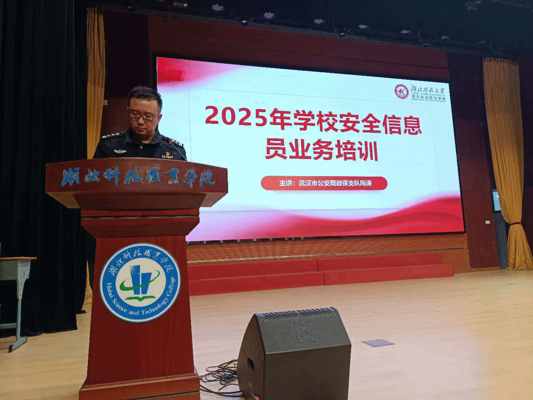 本网讯(通讯员 马忠 文/图)为进一步加强校园安全管理,提高安全信息员的业务能力,11月20日下午,学校组织开展了安全信息员业务培训活动,邀请武汉市公安局政保支队陶涛警官作专题讲座,各部门维稳员、各班级安全信息员和全体保卫干部300余人参加培训。