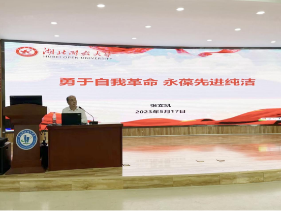 本网讯(通讯员 马容莉/文 向晋怡/图) 5月17日上午,校纪委书记、监察专员张文凯以“勇于自我革命 永葆先进纯洁”为主题,为软件工程学院师生及校纪检监察干部讲授主题党课。